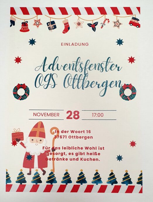 Unser offener Ganztag gestaltete mit unseren Schülerinnen und Schülern das diesjährige Adventsfenster. Eine schwungvolle Einstimmung auf den Nikolaus. Herzlichen Dank an das OGS Team!